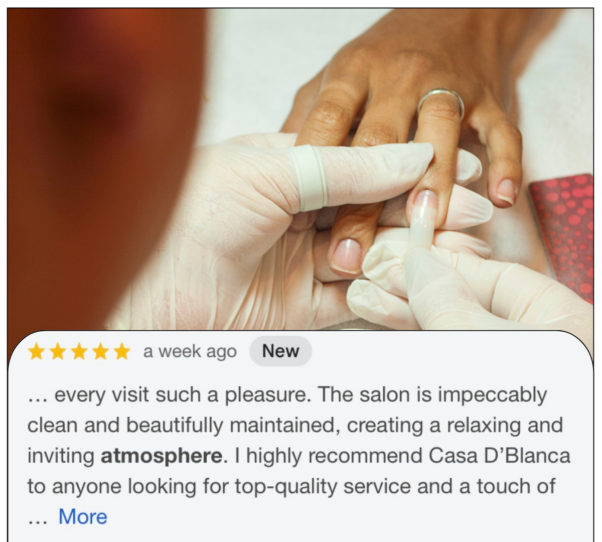 "I’m absolutely obsessed with Casa D’Blanca Nails & the ladies who work there! Moved to Grimsby recently, during my move I broke a nail - I needed just one quick fix before I started work the very next day. Told them my story and they squeezed me into a spot when they had 20 mins between clients! Made my entire week. They made me feel so welcomed & at home in my new city." -Lorelei